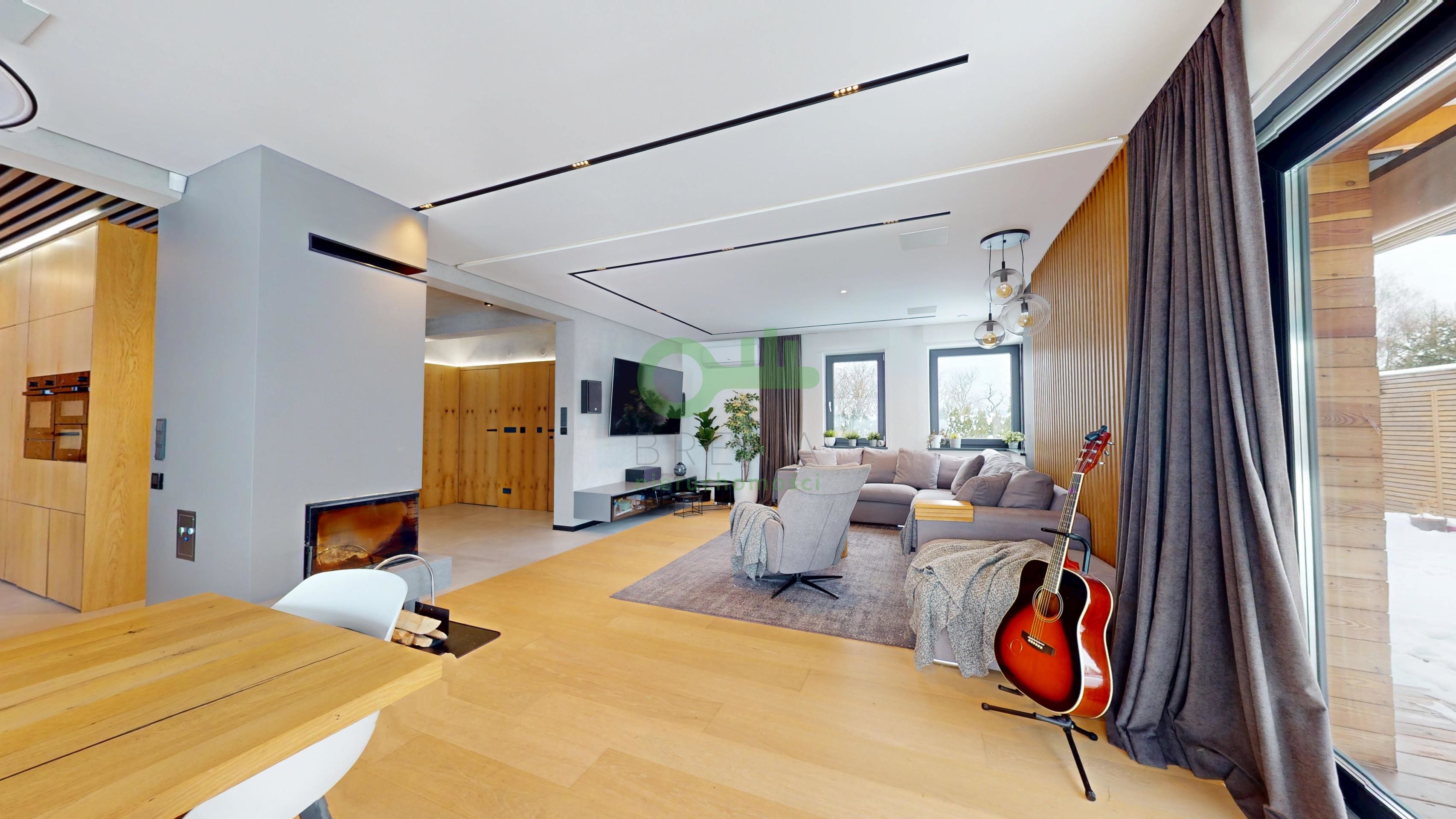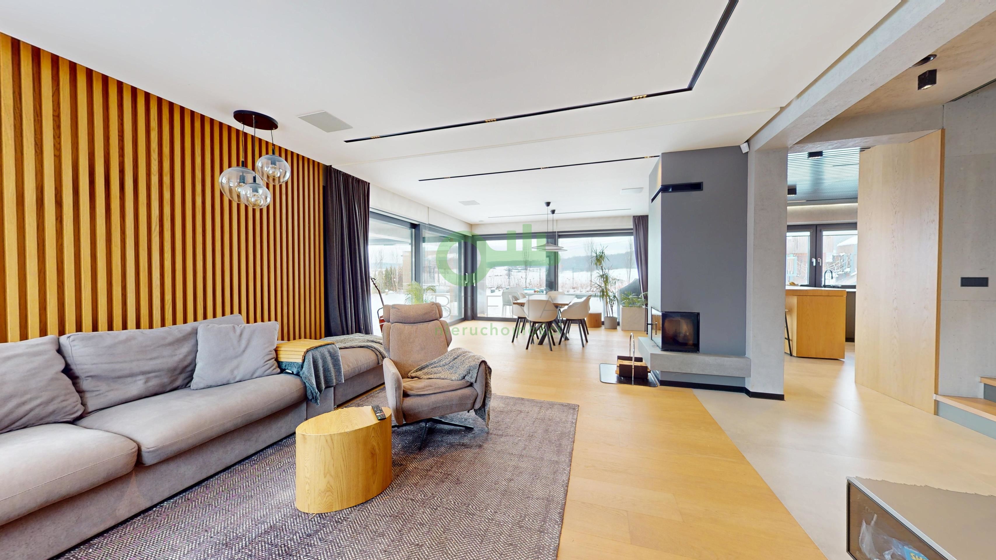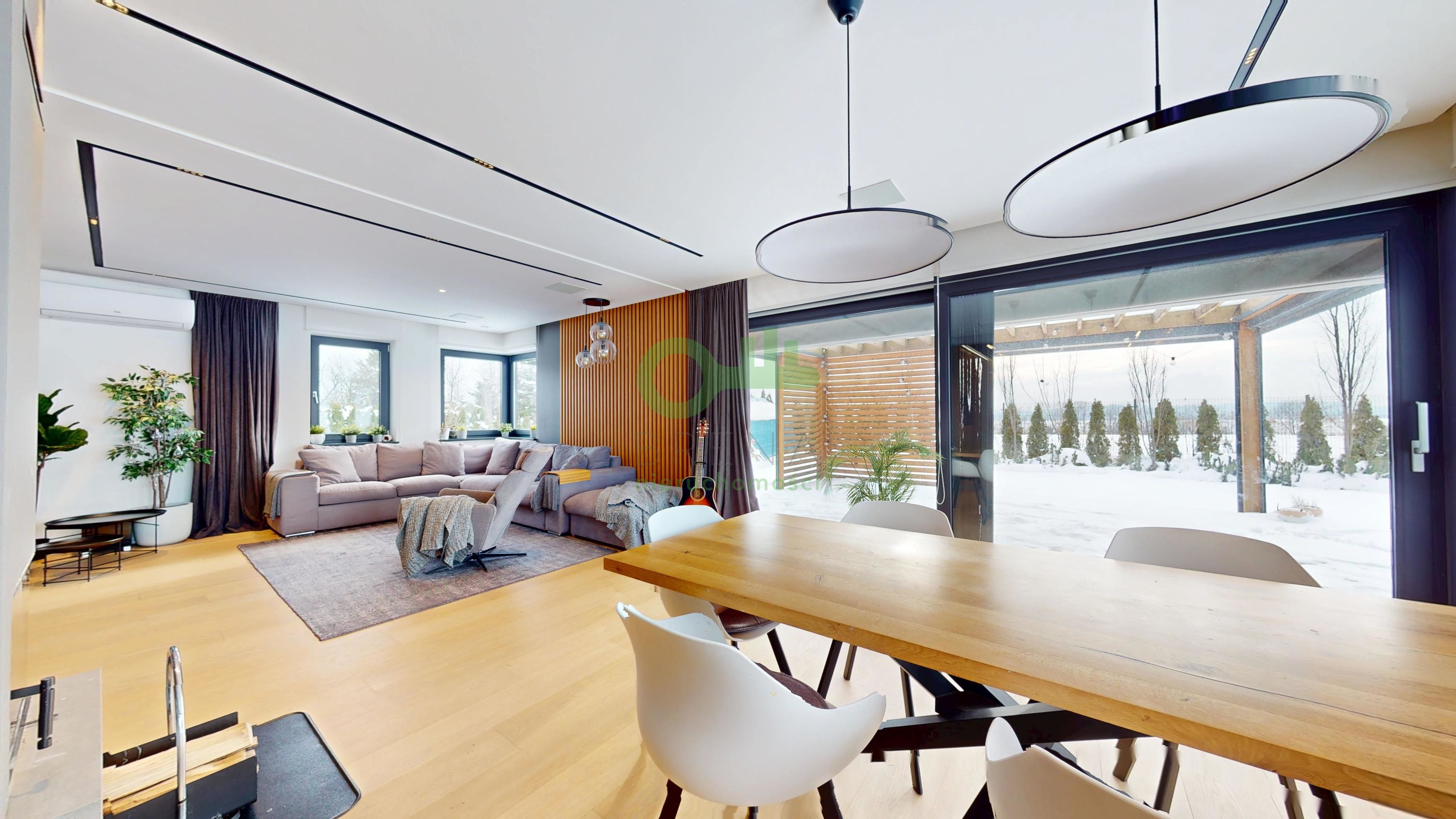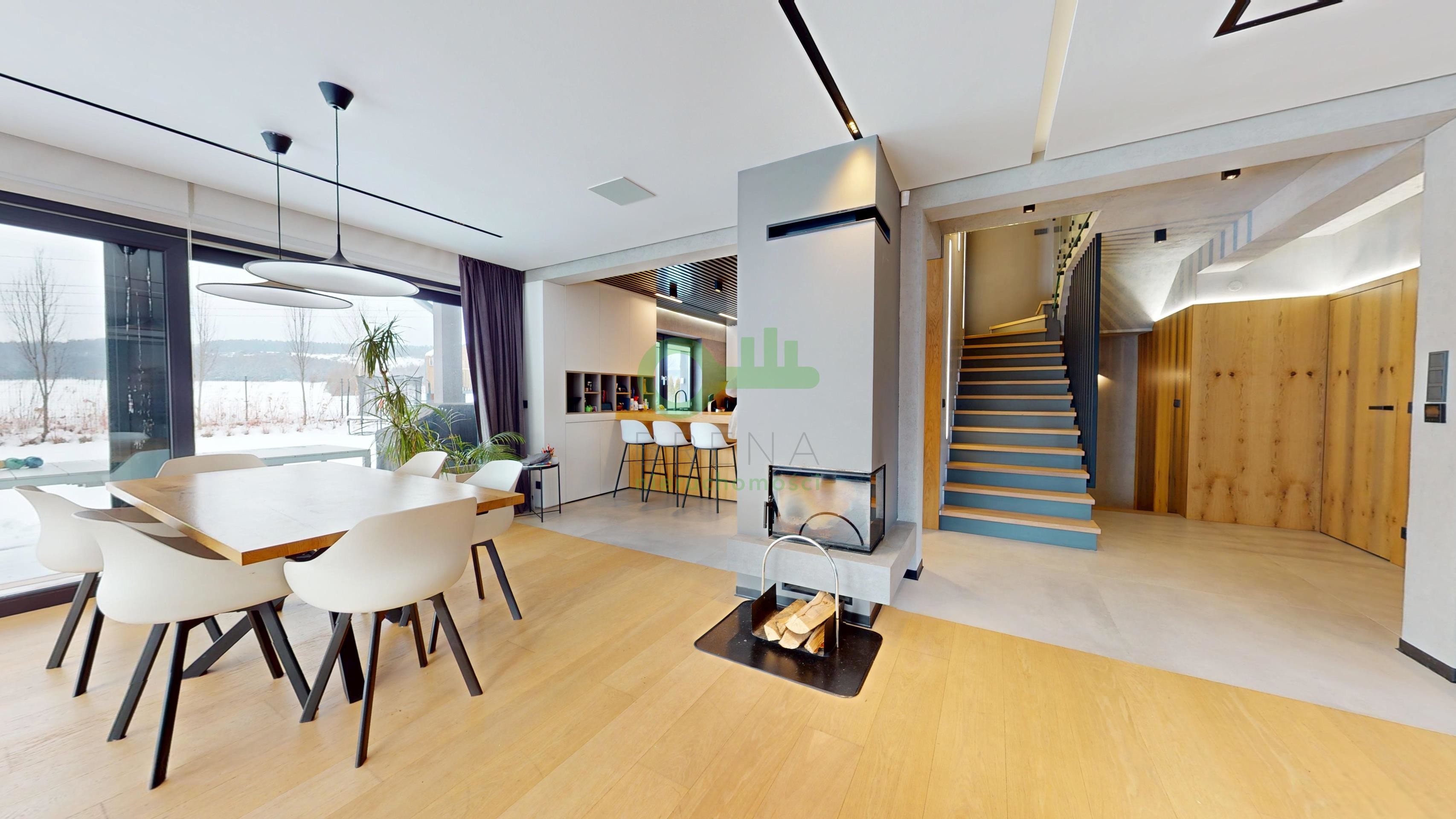 Oferta skierowana do klienta poszukującego gotowej rezydencji, która łączy nowoczesny design (styl Warm Industrial) z pełną funkcjonalnością domu inteligentnego i rekreacyjnego.