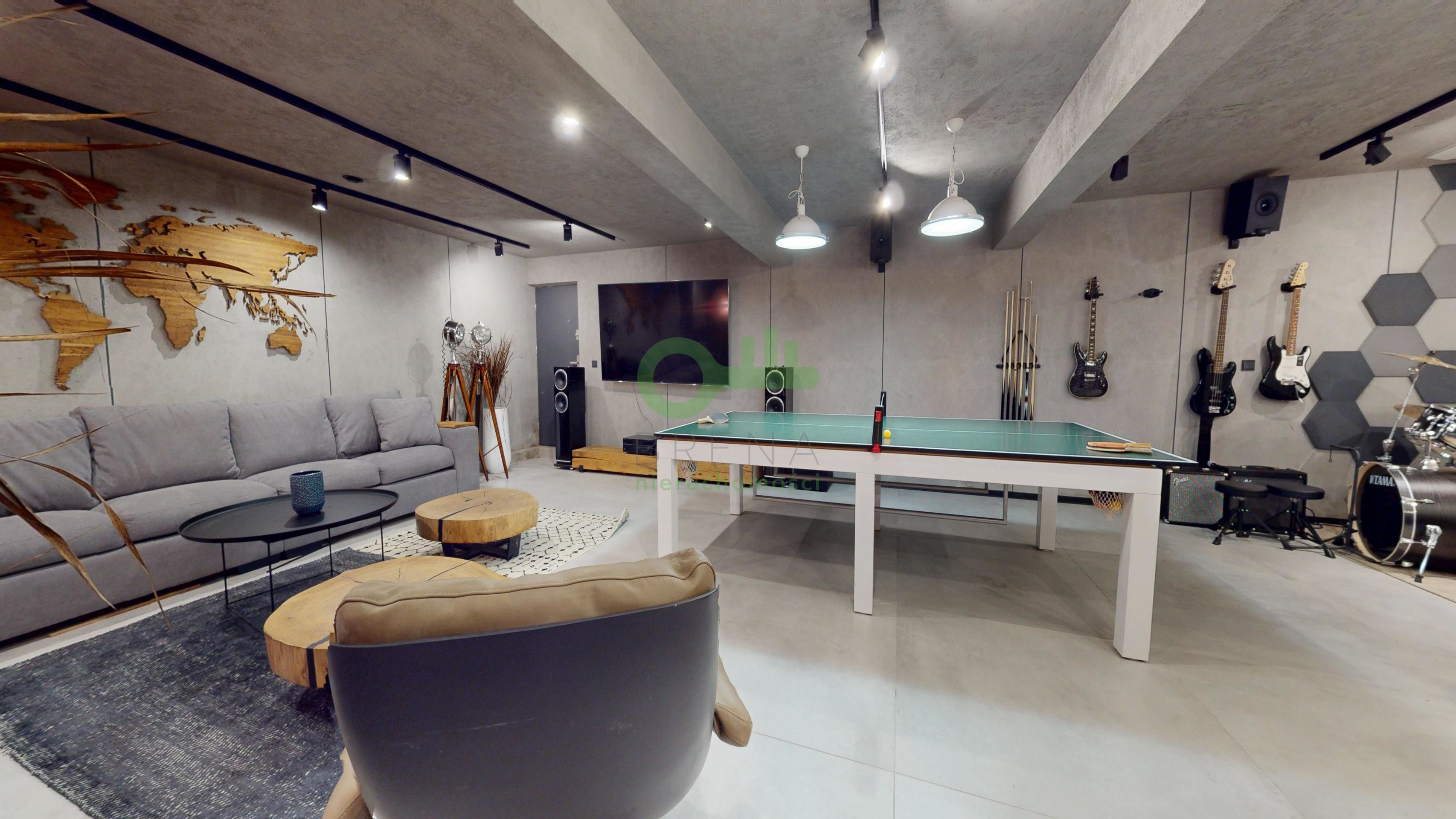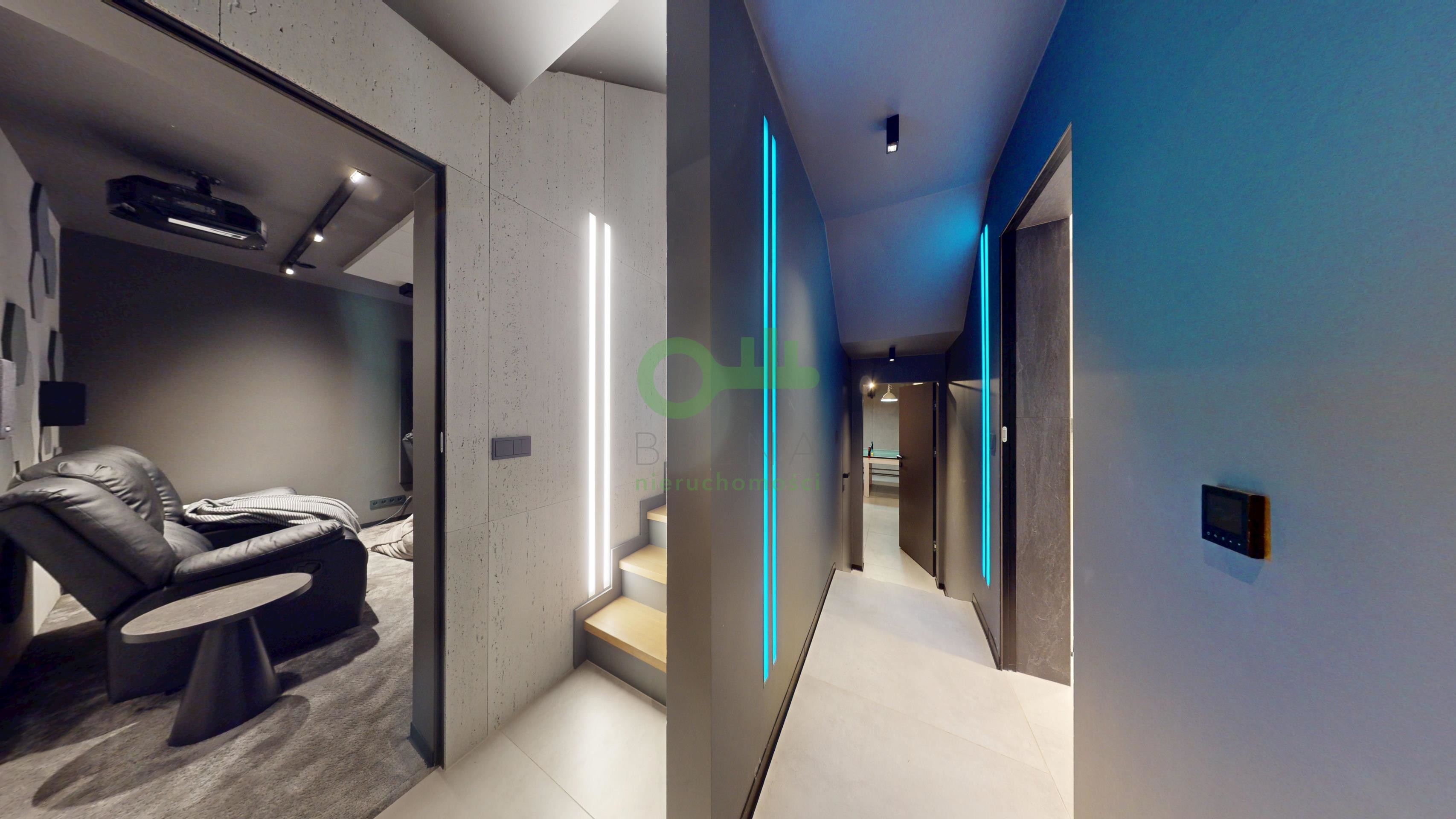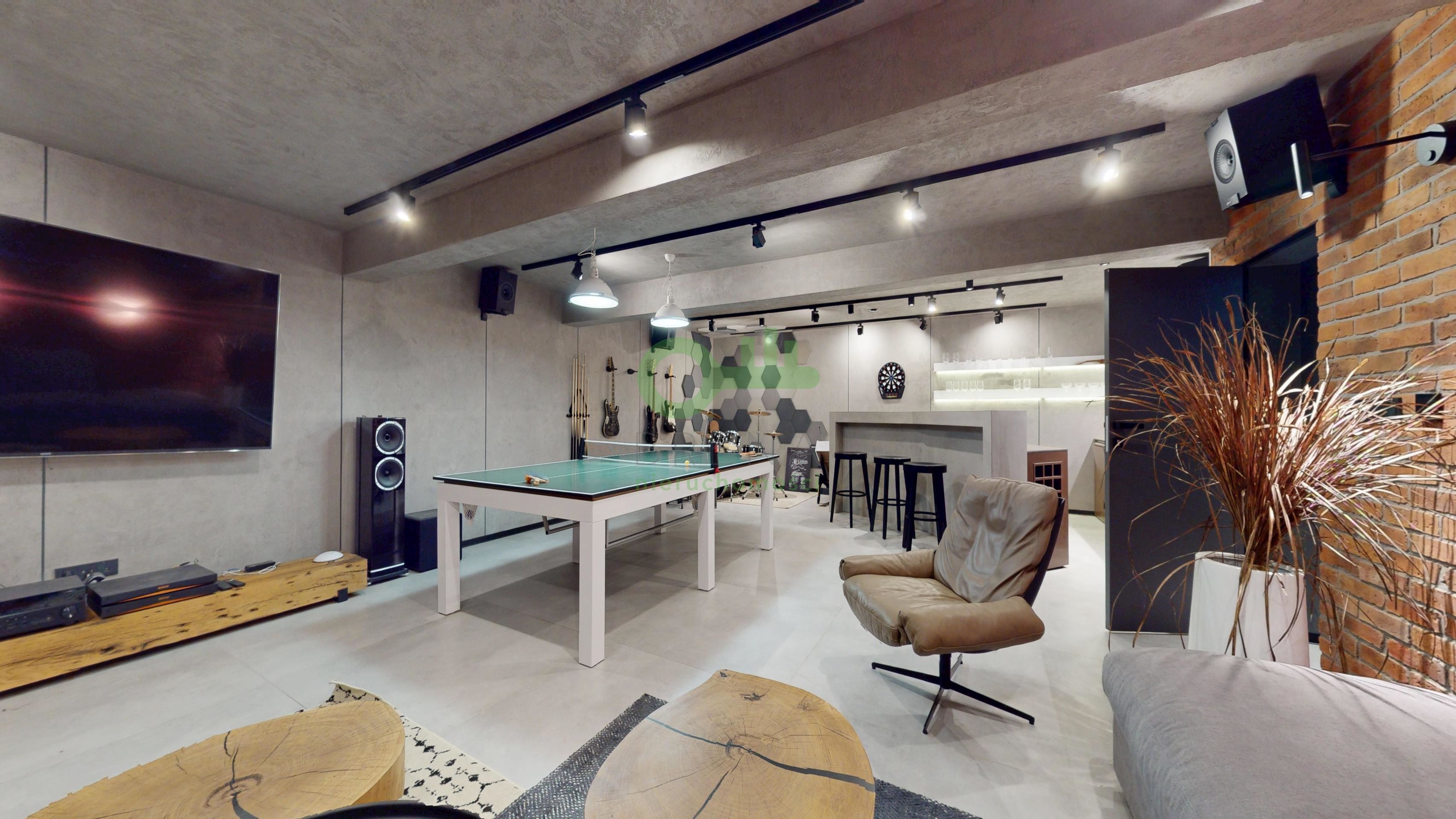 1. Strefa Rekreacji i SPA (Poziom -1 / 141 m²) Unikatowe prywatne centrum rozrywki, które podnosi standard życia domowników: sala kinowa, w pełni wyposażona siłownia domowa. Pokój gier (Game Room) z dedykowanym barem idealna przestrzeń do przyjmowania gości.